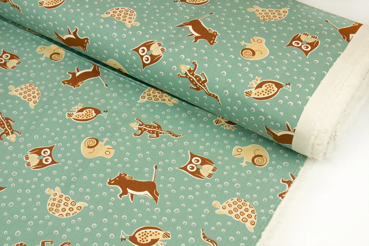The high-quality twill fabric “Animal Antics – Allover” made of 100% cotton impresses with a cheerful design that shows various animals such as owls, turtles and geckos on a turquoise background. This versatile fabric is ideal for creative projects such as children’s clothing, bed linen, curtains and decorative pillows, and gives any room a playful and inviting atmosphere.