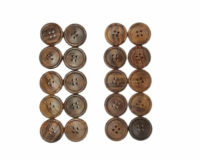 Ekta Enterprise Natural Coffee Brown Dark Wooden Button 20 Pcs 25 mm