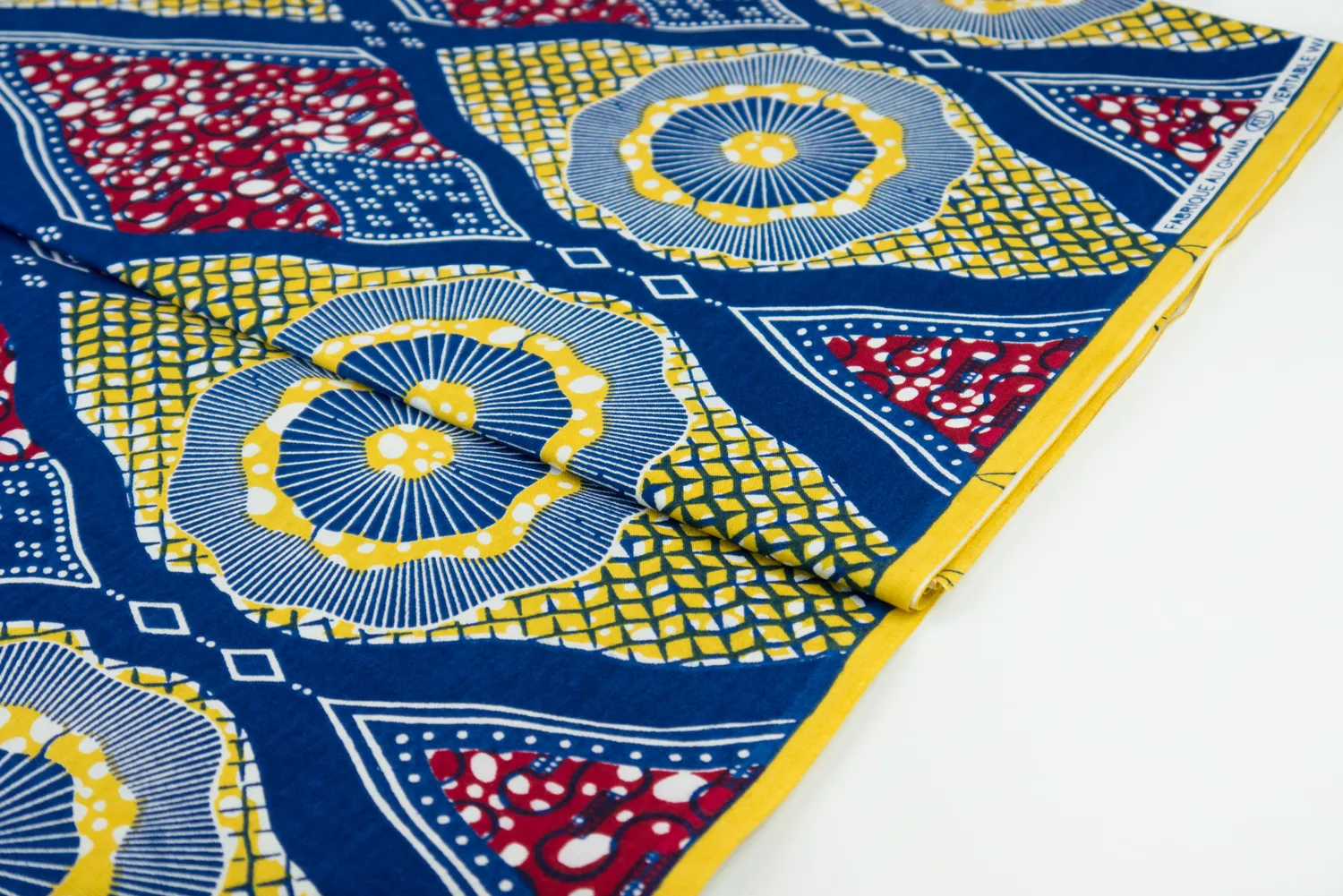 The traditional fancy prints combine wonderful geometric patterns and splendid colors. They come from one of the last African productions in Ghana and are delivered to us directly from the manufacturer.