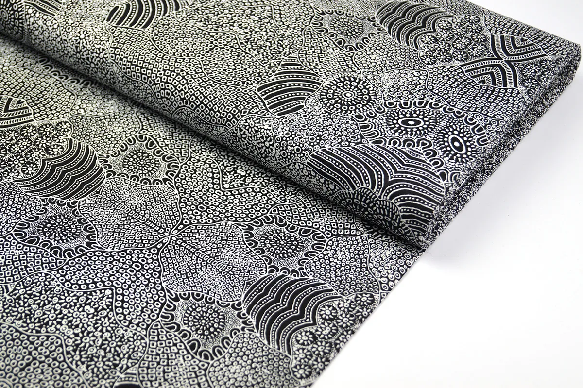 Feather-soft, high-quality cotton fabric with a lively Aboriginal design. Each pattern is designed by an Aboriginal artist and tells a story from their culture.